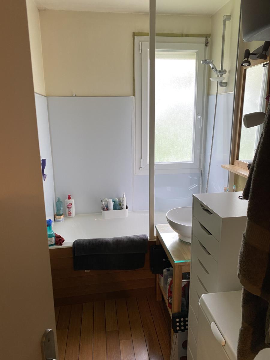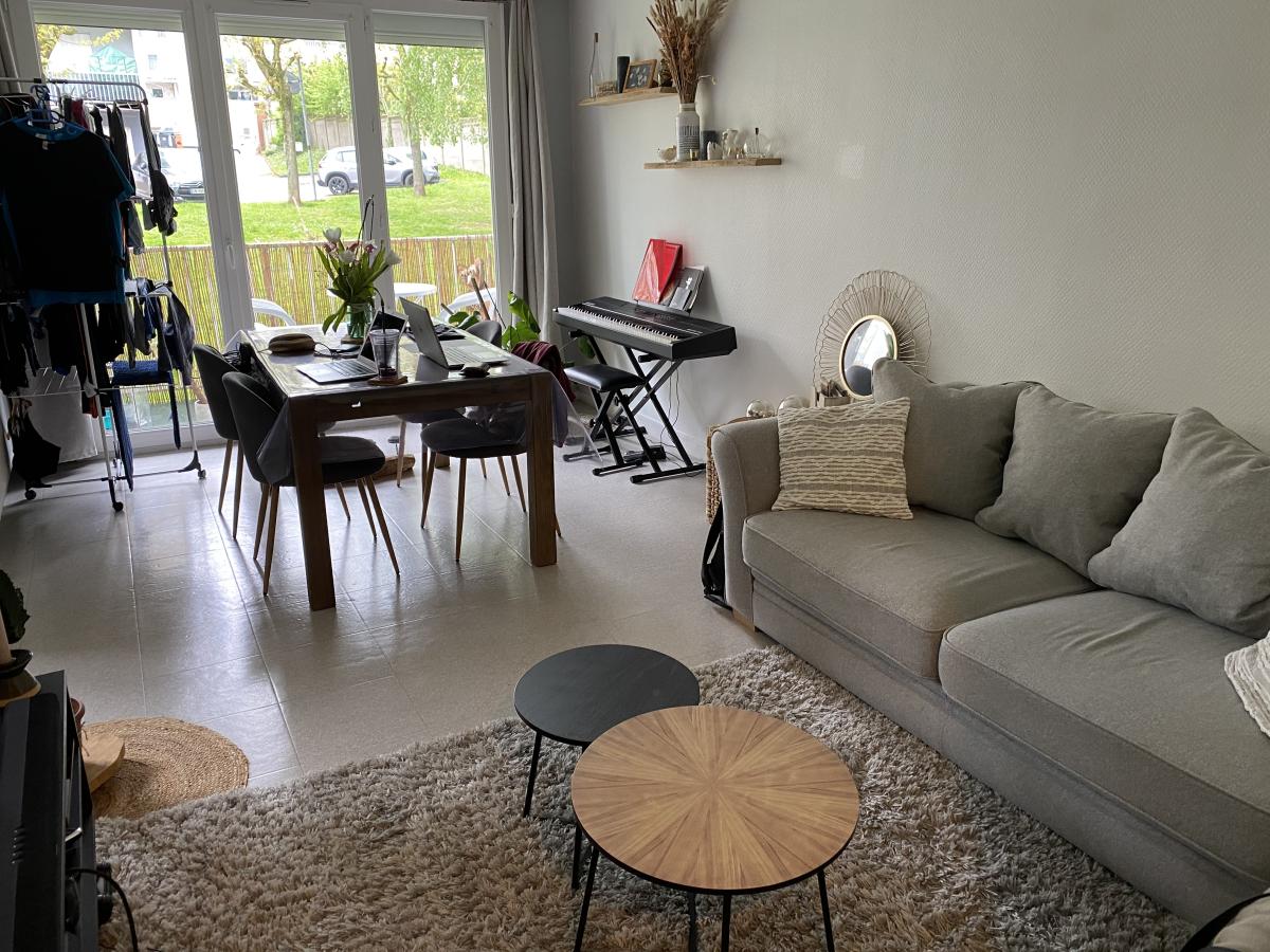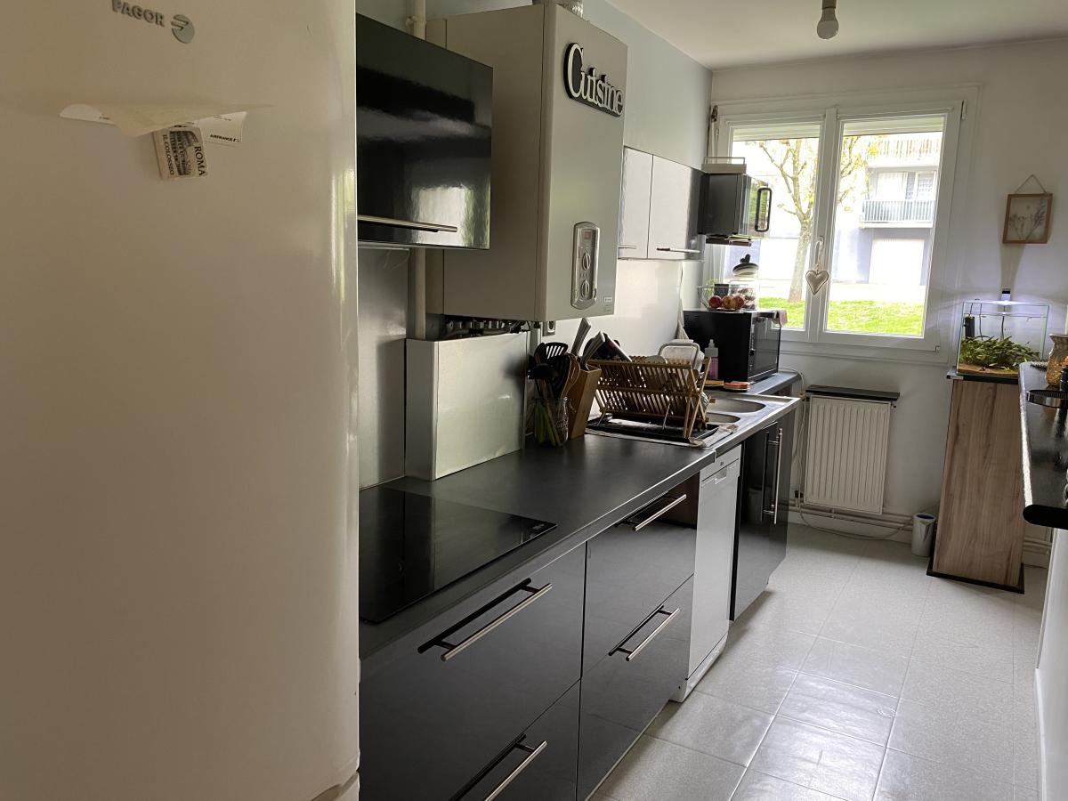 Une entrée, un séjour avec balcon ouvert sur une cuisine aménagée (avec plaques électriques), une chambre avec placards, une salle de douches, WC séparé et un cellier.